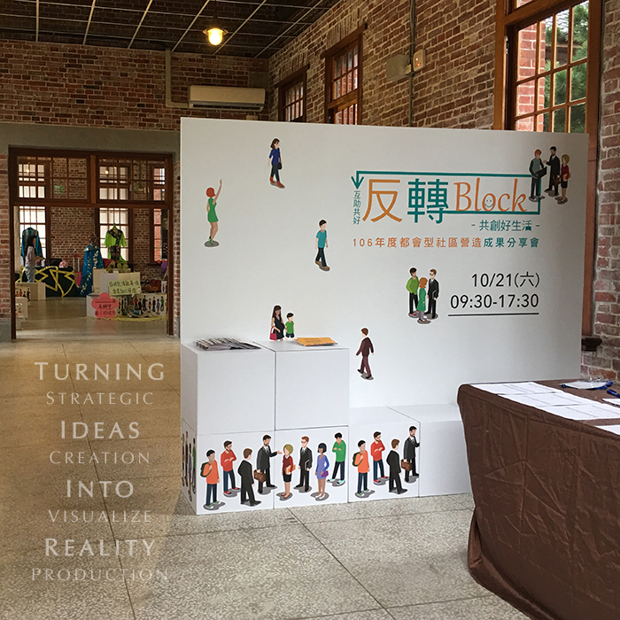 首頁 地方創生類 國立新竹生活美學館2017翻轉Block成果展會場設計 國立新竹生活美學館2017翻轉Block成果展會場設計地方創生類, 展場設計 客戶|台灣城鄉特色發展協會專案名稱|文化部-國立新竹生活美學館- 2017翻轉Block成果展會場設計設計概念|社區營造最重要的資本就是「人」,2017年我們以反轉Block、共創好生活為主題,把環境改善、社福照顧、城鄉共好的議題拉進來,結合跨族群的實驗方案,讓都會居民們打破冷漠,積極參與公共事務。活動的立方體紙台,不但提供了展場的多變性,更讓每個團隊可以自由發揮,來展示他們的營造成果。 預約您的專屬諮詢 標籤# 展場設計# 活動主視覺設計# 社區營造# 成果展# 文化部 上一 文章 桃園文化局2019公廈行動方案成果展 下一 文章 國發會地方創生成果展三峽限定