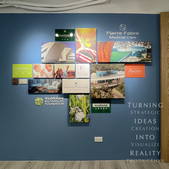 所以,我運用無框畫、壓克力、玻璃貼等複合媒材,將企業做過的CSR活動照,作為傳達企業的精神及塑造品牌形象,雖然這只是在客戶的辦公室裡,但卻能讓經過的人及訪客,都感受到客戶對經營公司的用心。